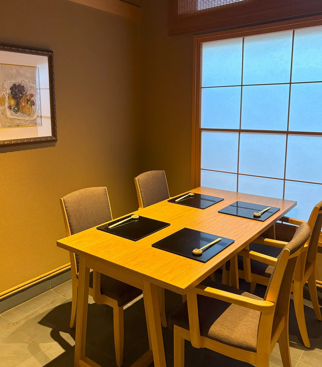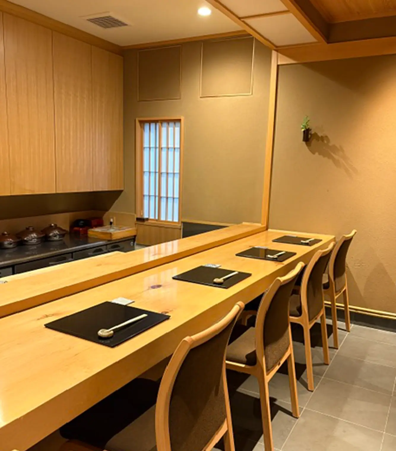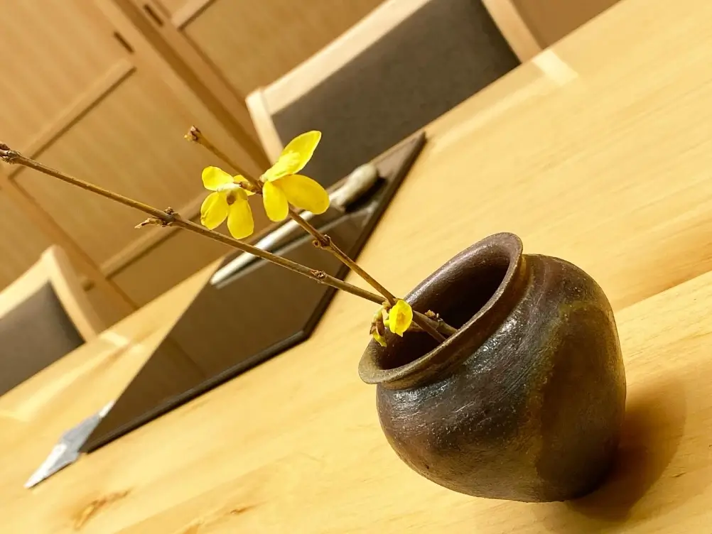 調理するライブ感が味わえるカウンターが5席、ご接待などおもてなしにご利用いただけるテーブル個室(4名様まで)が2部屋ございます。